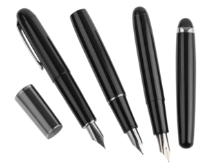 Ballpoint pen isolated in transparent PNG, top view of three pens, business office desk design element