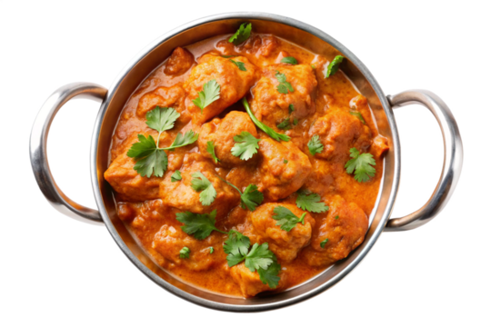 Indian butter chicken curry in balti dish isolated on transparent a white background