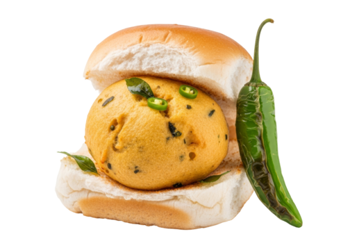 Crispy golden fritter bursting with vibrant vegetables and herbs, perfect for culinary content, Isolated on white background