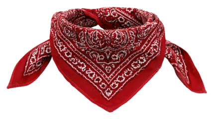 Red paisley bandana tied in a knot, centered