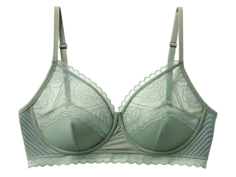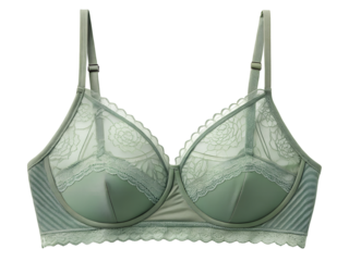 Elegant light green bra featuring floral lace details on background intimate apparel design underwear fashion closeup
