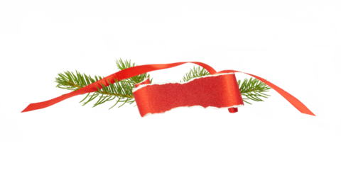christmas fir tree decoration with red shiny name tag label or banderole sleeve banner isolated on white or transparent png
