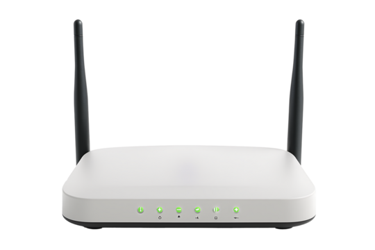 Contemporary Wireless Network Router with Power and Connection Indicators Illuminated, Conveying Stable Internet Service and Digital Lifestyles for Homes and Offices