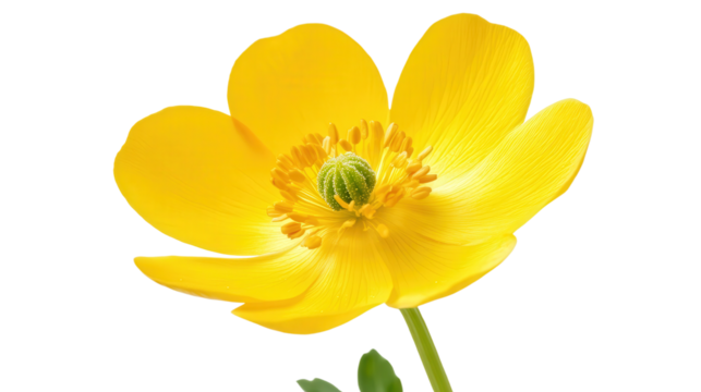Compact yellow buttercup bloom with glossy petals, Transparent background, PNG file