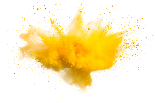 explosion of dry yellow paints on a transparent background. cloud and paint particles. Holi paint