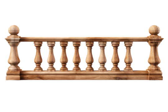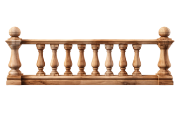 Classic wooden railing with balusters isolated on transparent background