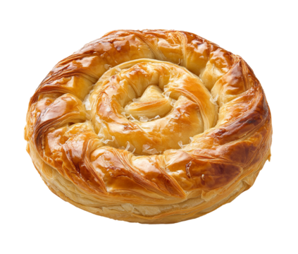Captivating Still Life of Bulgarian Banitsa Pastry, A Delectable Fusion of Flaky Layers and Savory Filling, Perfect for Culinary Enthusiasts and Food Art Aficionados Worldwide