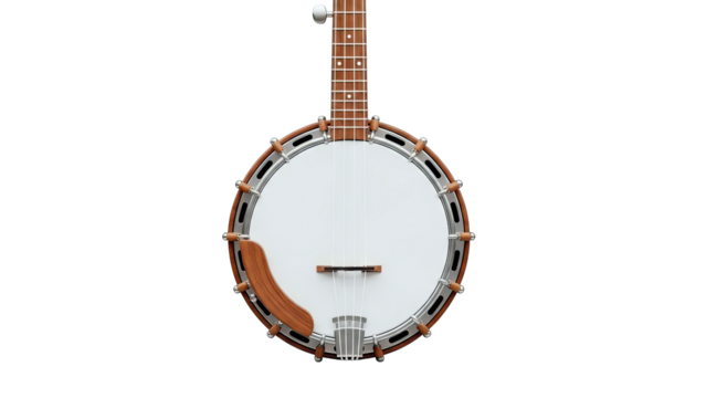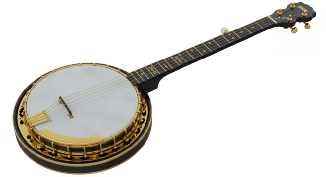 Classic five-string banjo lying on a transparent background, ready for bluegrass or folk music compositions