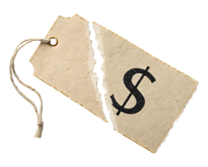 Torn price tag with dollar symbol for sale promotion or financial crisis application use
