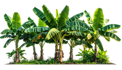 Lush banana trees, vibrant green foliage, tropical garden