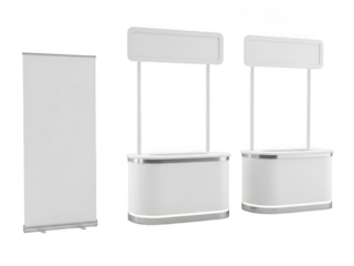 Empty White Pull Up Banners for Advertising and Marketing Displays, Cut Out, Clipping Path, Isolated on a Transparent PNG Background.