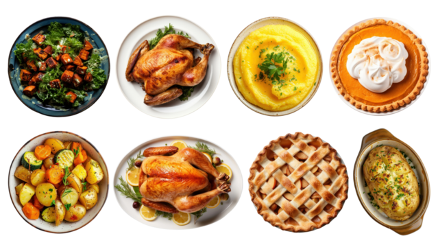 PNG Thanksgiving dinner flatlay element set, transparent background
