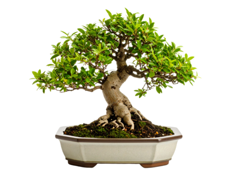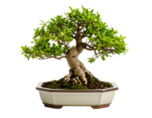 A large banyan tree with multiple trunks and aerial roots, isolated on transparent background