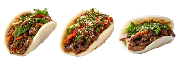 steamed bao buns filled with grilled meat and vegetables isolated png transparent cutout