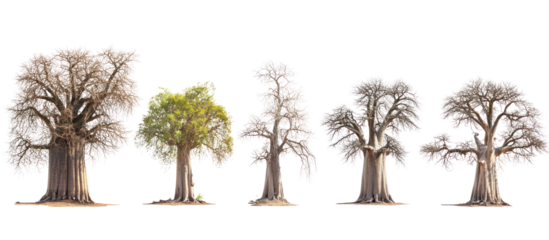 Four baobab trees of different sizes isolated on transparent background