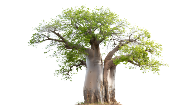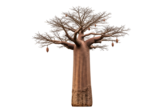 Baobab tree, standing tall and majestic isolated on white background
