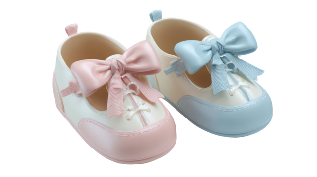 Pair of baby shoes with bows isolated on transparent background