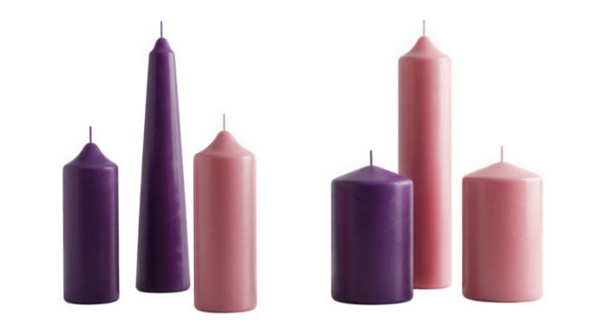 White pillar candle decorated with a small red ribbon bow, isolated on transparent background
