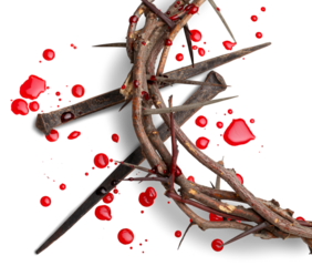 Bloody crown of thorns on the desk. Good Friday, Passion of Jesus Christ. Christian Easter holiday.