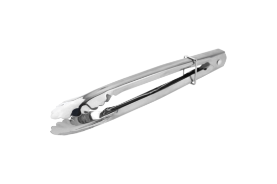 Kitchen tongs on a white background. Close-up metal kitchen tongs isolated on white background.