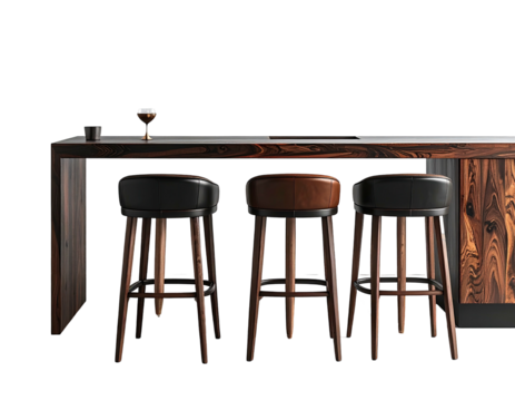 Modern bar counter with stools on transparent background