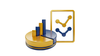 3D Dashboard with Pie Chart and Bar Graph Icons on transparent background