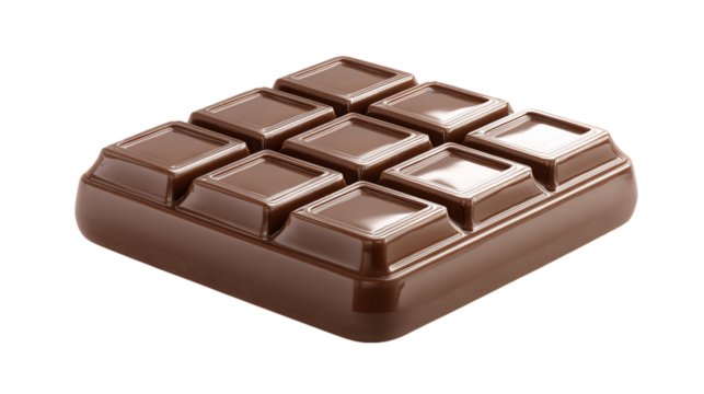 Chocolate square bar icon in stylized brown plastic, segmented dessert treat. Isolated on transparent background