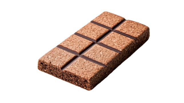 Textured chocolate bar with dark grid pattern, cut out transparent