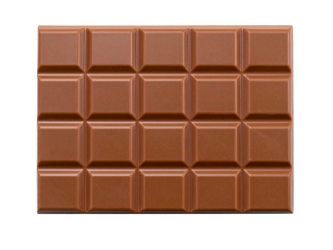 A realistic chocolate bar with segmented squares, isolated on a transparent background, perfect for packaging, food advertisements