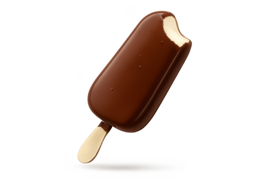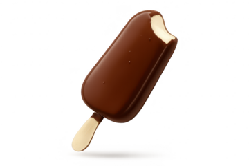 Bitten chocolate covered ice cream bar on a transparent background scene