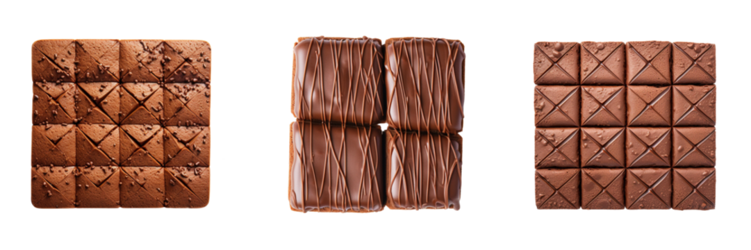 Set of square-shaped chocolate cookies top view isolated on a transparent background