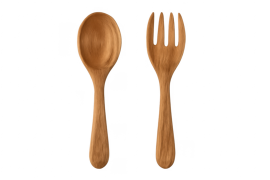 Wooden spoon and fork, eco-friendly kitchen cutlery
