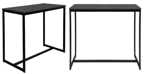 Simple black rectangular table with silver metal legs isolated on transparent background
