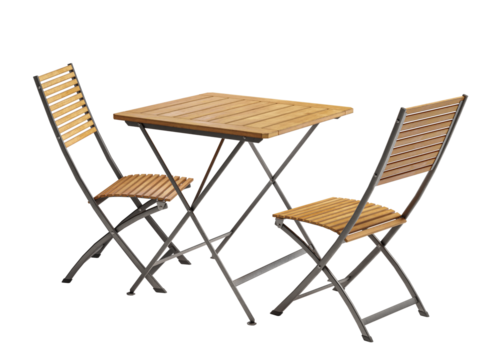 Wooden Table with Two Chairs. Isolated on White Background with Clipping Path