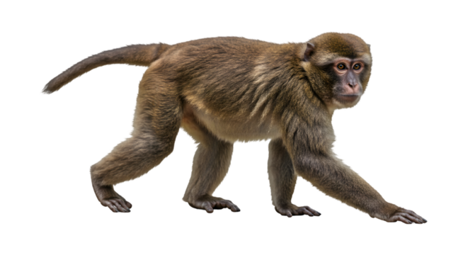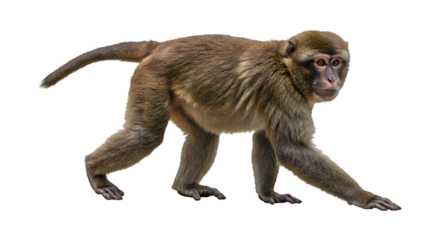 Realistic Portrait of a Barbary Macaque Walking on a Transparent Background