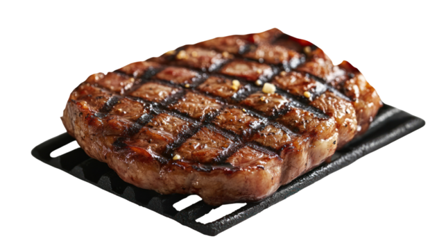 Sizzling Thick-Cut Steak on Grill Showcasing Juicy Texture on Transparent Background