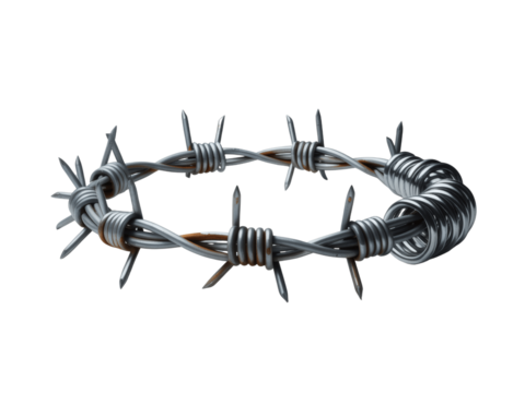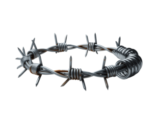 Twisted strands of barbed wire stand out against a transparent background, conveying danger and restriction in a minimalist style.