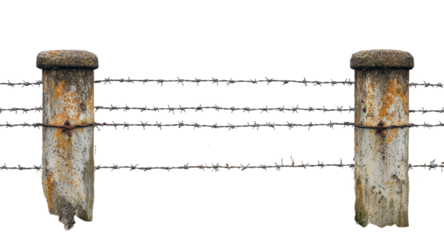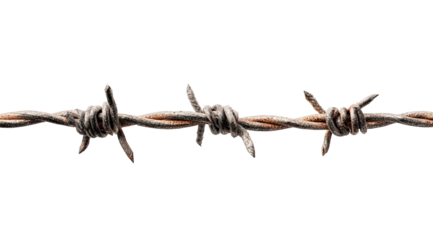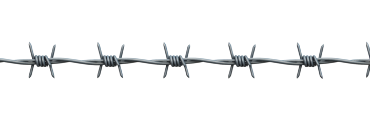 Sharp barbed wire strand against transparent background, symbolizing restriction and security concerns