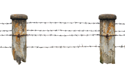 Barbed Wire Fence Security Rural Landscape and Rustic Texture Image on transparent background