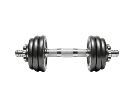 Dumbbell with black plates isolated on transparent background for strength training