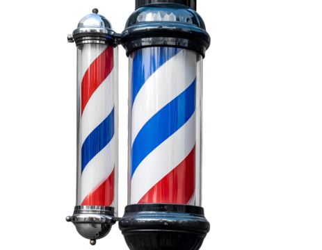 Firefly_Traditional barber pole with red white and blue stripes isolated on a transparent background
