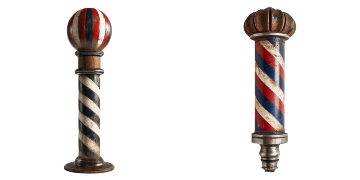 Vintage Barber Pole Set Isolated on Transparent or White Background, PNG