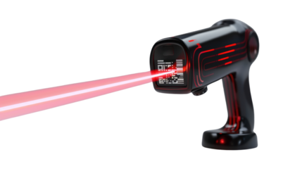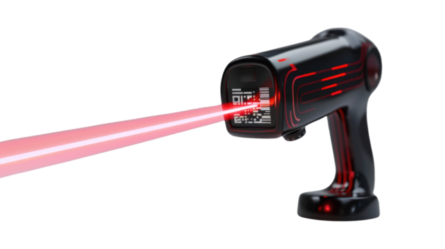 Bar code thermal transfer label printer isolated on a transparent background. Completely in focus.