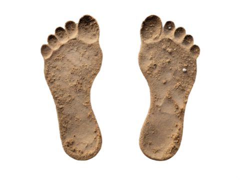 Footprints in the Sand on a Black Background