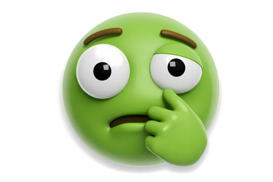 Green 3D emoji looking sick, disgusted, or feeling a sense of nausea.