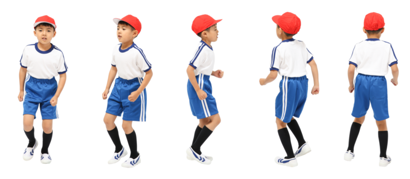 赤白帽子の体操服男の子 人物切り抜き5アングル