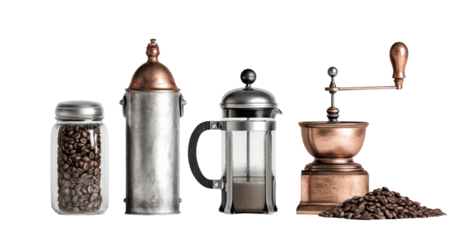 Elegant Set of Coffee Tools: French Press, Grinder, and Accessories