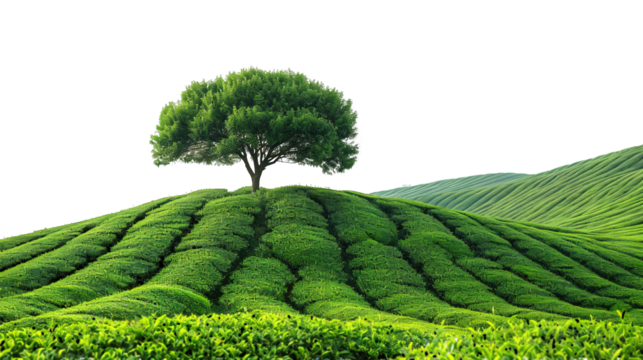 tea plantation landscape isolated on transparent background ,generative ai