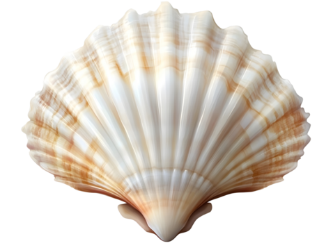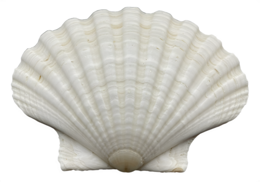 White elegant sea jacobean scallop shel isolated on transparent background, decorative summer underwater seashell in tropical coastline for souvenir of seafood