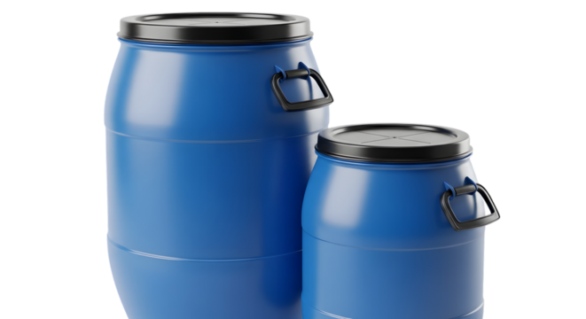 Isolated cyan plastic drum container for liquid and chemical substance storage indoors